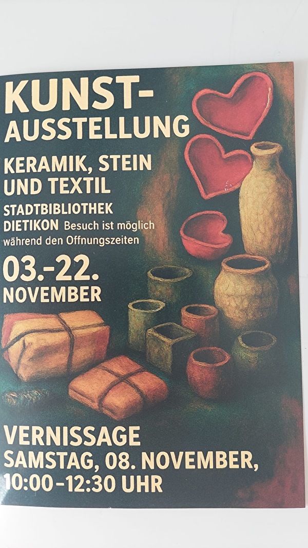 Handgemachte Produkte aus Keramik, Stein & Textil in der Stadtbibliothek Dietikon