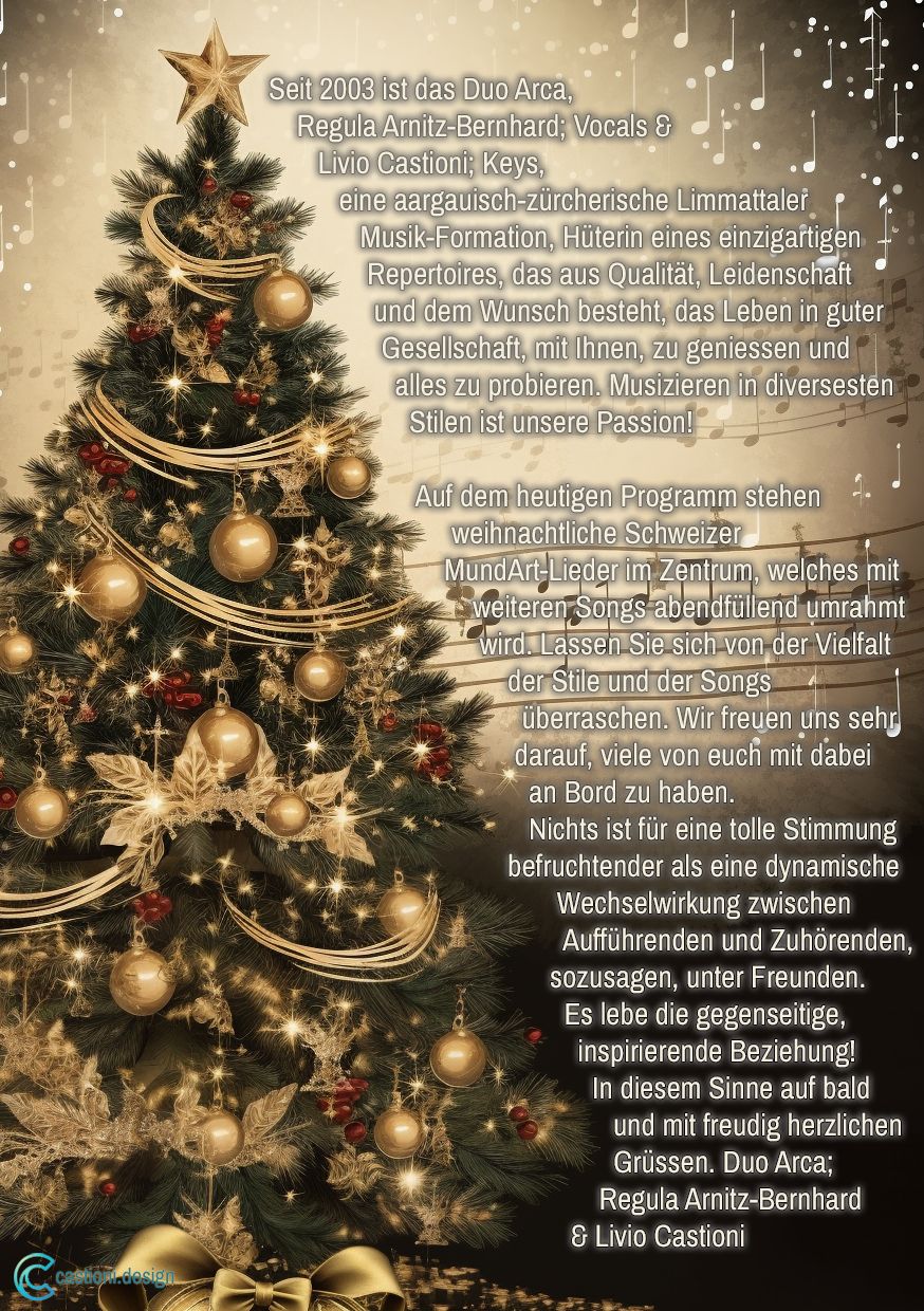 Wir, das Duo Arca, Regula und ich, freuen uns bereits sehr auf diesen Abend und darauf, viele bekannte Gesichter im Konzertpublikum zu entdecken und Euch persönlich begrüssen zu dürfen!