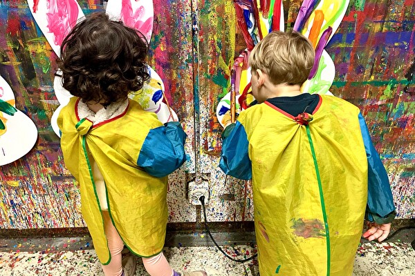 Das Malatelier steht allen offen und es kann gemalt werden. Die Freude am Tun steht im Vordergrund. Die Kinder experimentieren im Malatelier mit Farben und Formen. Auf diese Weise sammeln sie wertvolle und kreative Erfahrungen an den Malwänden.